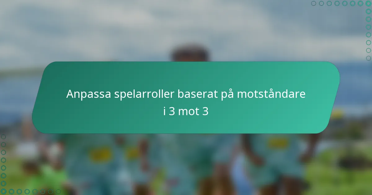 I tre-mot-tre-spel är uppdelningen av spelarroller i försvarare, mittfältare och anfallare avgörande för lagets strategi. Att anpassa dessa roller baserat på motståndarnas styrkor och svagheter gör det möjligt för lagen att förbättra sin prestation och öka sina chanser till framgång. Genom att analysera motståndarens spelstil kan spelarna göra informerade justeringar av sina taktiker, vilket säkerställer att de svarar effektivt på olika utmaningar på planen.