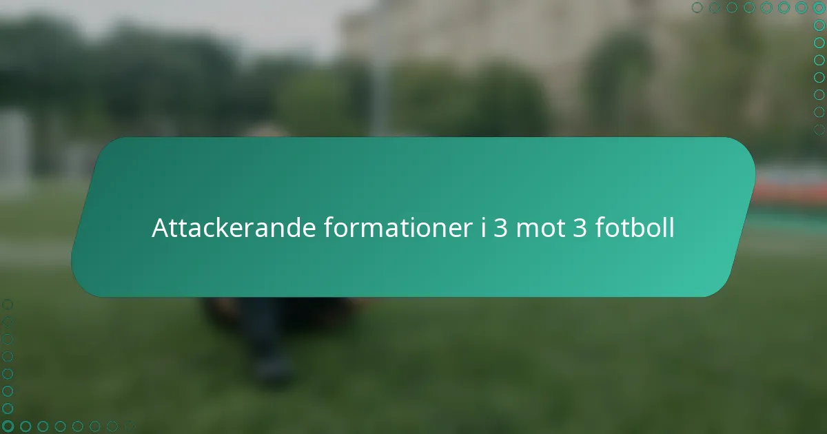 3-mot-3-fotboll är en dynamisk och snabb variant av det traditionella spelet, där lag med tre spelare måste utnyttja skicklighet och lagarbete på en begränsad yta. Nyckelattackerande formationer, såsom 1-2, 2-1 och 3-0, spelar en avgörande roll för att förbättra offensiva strategier och skapa målchanser. Effektiv kommunikation och tydligt definierade spelarroller är avgörande för att lagen ska kunna anpassa sina taktiker och maximera sin offensiva potential.
