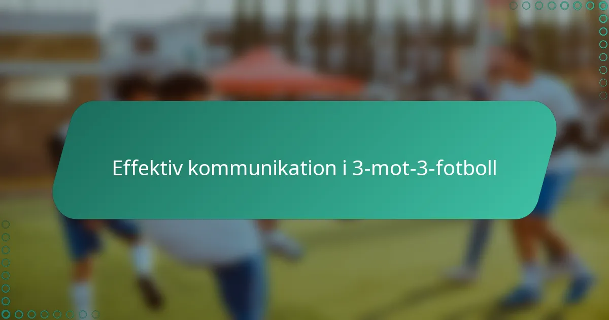 Effektiv kommunikation är avgörande i tre-mot-tre-fotboll, där snabba beslut och lagarbete är viktiga. Genom att använda verbala signaler och icke-verbala tecken kan spelare förbättra sitt samarbete och sin prestation på planen. Genom att implementera riktade övningar kan dessa färdigheter ytterligare utvecklas, vilket leder till förbättrad synergi och minskade fel under spelet.