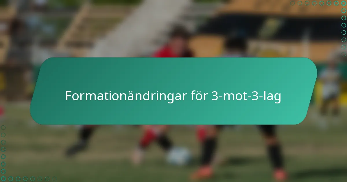 Att genomföra formationsändringar för 3-mot-3-lag kräver tydliga strategier och effektiv kommunikation. Fokusera på att öva specifika övningar, övergå smidigt under matcher och göra justeringar mitt under spelet baserat på prestation.