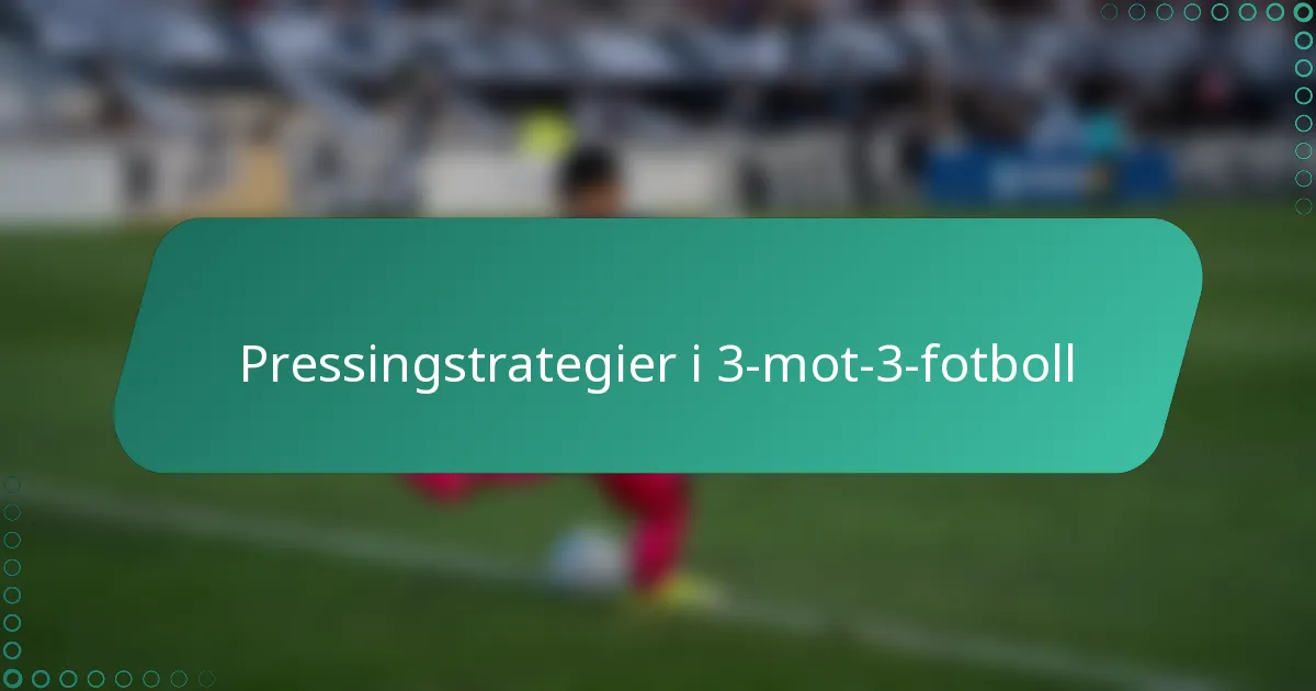 Effektiva pressstrategier i 3-mot-3-fotboll fokuserar på att maximera pressen på bollföraren samtidigt som utrymmet för motståndarna minimeras. Hög press, motpress och zonjusteringar är viktiga taktiker som kan påverka matchens utgång avsevärt.