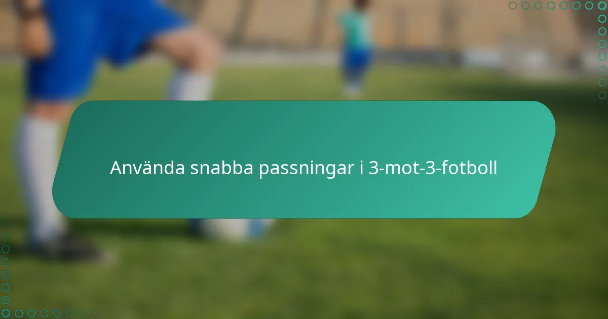 Snabba passningar i 3-mot-3-fotboll är avgörande för att behålla bollen och skapa målchanser i det begränsade utrymmet av smålagsspel. Genom att fokusera på kommunikation, timing och avstånd kan spelarna förbättra sitt samarbete och beslutsfattande, vilket leder till snabb bollrörelse som stör motståndarens försvar. Att bemästra denna teknik ökar inte bara tempot i spelet utan förbättrar också ett lags chanser till framgång på planen.